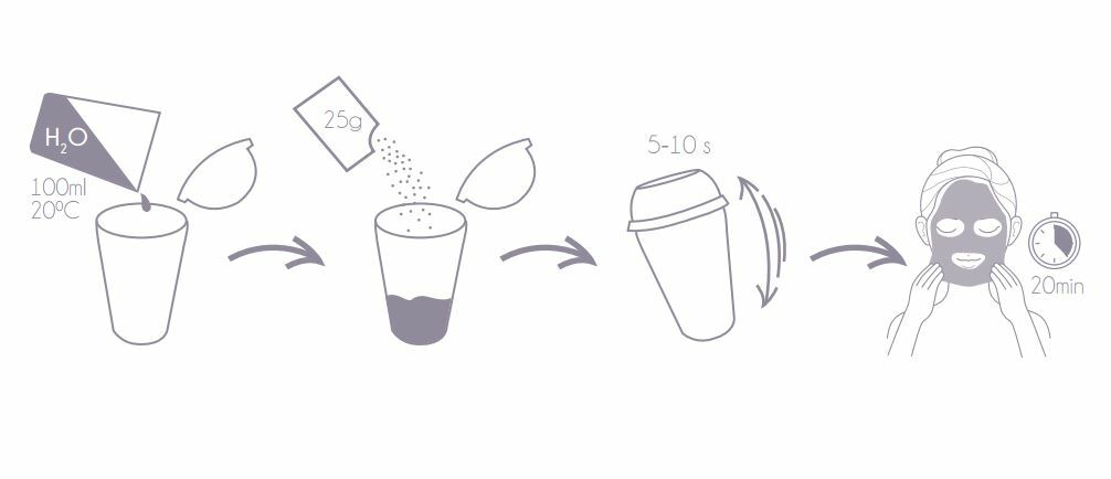 A beauty ritual for your skin- Mix 100ml of water at 20°C and 25g powder. Shake vigorously for 5 – 10 seconds.