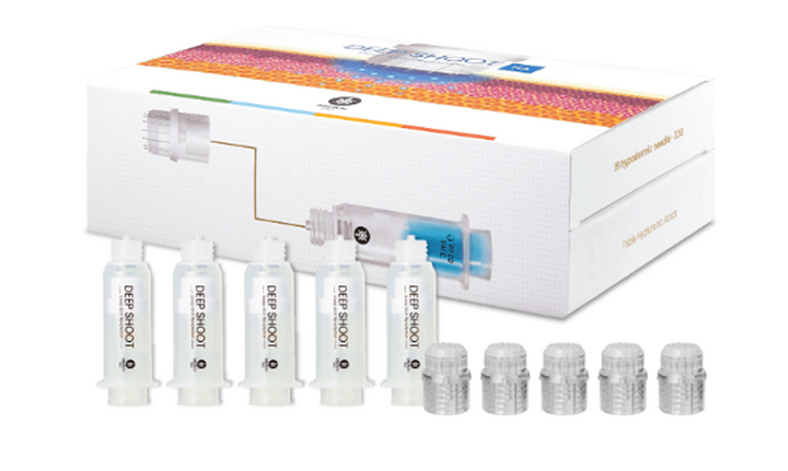 DEEP SHOOT HA is a Hyaluronic Acid provider integrating innovative pain-free 32G hypodermic multi-needle device, TurtlePin (19 pin, 0.5mm), that replenishes and retains moisture for intense hydration and improved radiance and complexion. With minimal pain, DEEP SHOOT HA’s absorption rate of the solution is 30 times higher than topical application and 15 times higher than MTS devices. With 0.5mm multi-needles, DEEP SHOOT HA is designed for use at professional beauty salons and spa.